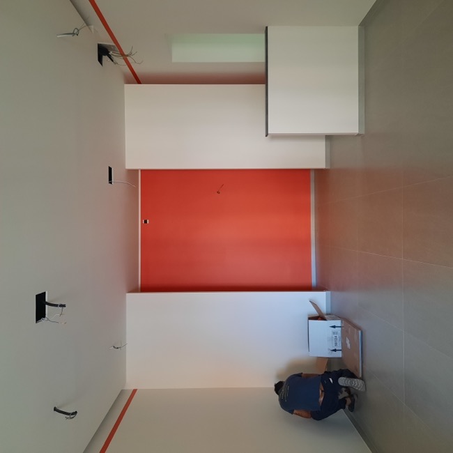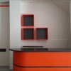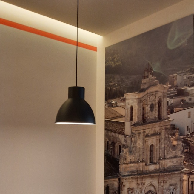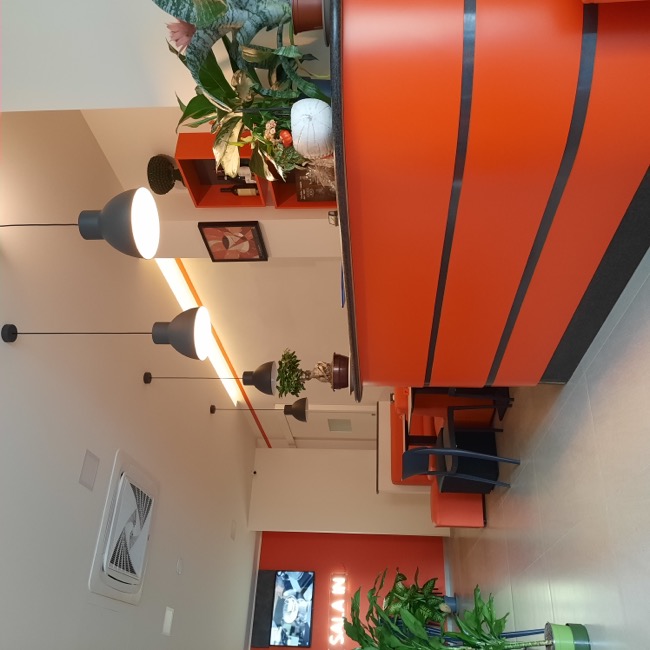 Nel settembre 2023 dei clienti mi chiesero dei consigli su come arredare un piccolo locale da adibire a sala da the, da utilizzare a servizio del bar di loro proprietà. Originariamente destinato ad altri usi e di forma quadrangolare, il locale si prestava ad una distribuzione interna molto simmetrica dove, in corrispondenza dell’ingresso, ho predisposto un banco attrezzato per la sala e ai lati ho sistemato i tavoli e i divanetti per la clientela. In fondo al locale ho ritenuto di schermare due porte di servizio in modo da evitare interferenze visive con i clienti del locale e rendere più accogliente l’ambiente. La scelta della tinteggiatura di colore arancio è stata ricavata dal logo del Bar. A questa sono stati abbinati il colore bianco di fondo alle pareti e un grigio antracite negli altri complementi di arredo, il tutto per mitigare la cromia forte dell’arancio predominante. I corpi illuminanti sono stati istallati in corrispondenza di ogni tavolo in maniera ordinata, quale scansione visiva all’interno dell’ambiente. Per dare memoria storica ed ambientale ad un locale nato nel centro storico della cittadina, ho inserito due foto a grande formato alle pareti più esposte, creando nel complesso un ambiente più caldo e accogliente